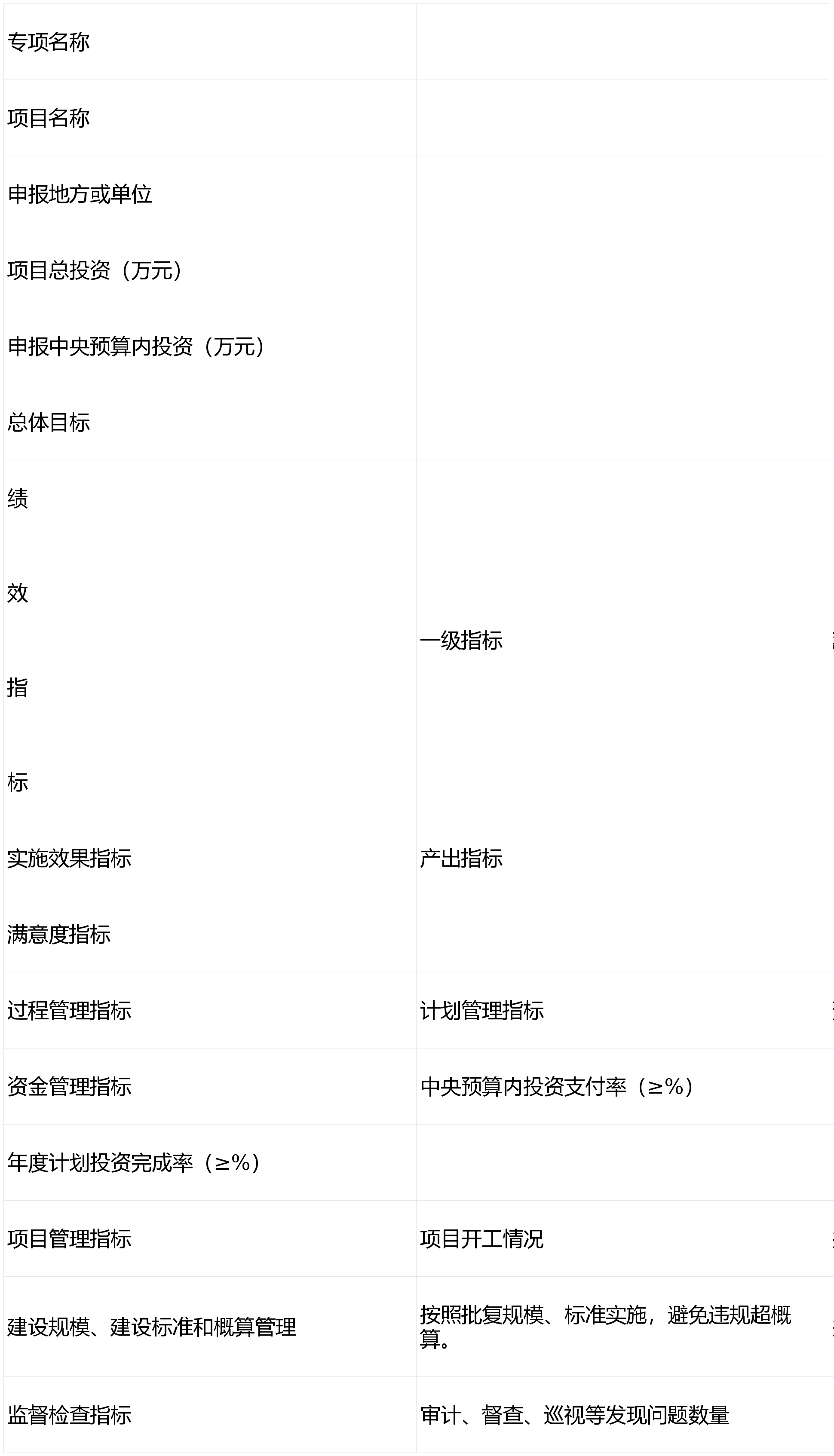 包括项目审批(核准、备案)、规划许可、规划选址、用地(用海)审批、环评、节能审查、施工许可等前期手续(如需办理)复印件,建设项目2026年中央预算内投资计划绩效目标表,以及资金到位、是否列入严重失信主体名单情况。