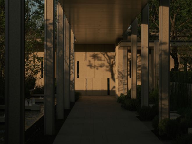 项目5#首层架空打造第三代架空层泛会所,在设计上是抽屉式的空间延续,强化景观与架空层内外渗透的景观联系,赋予空间更多美感和功能性。