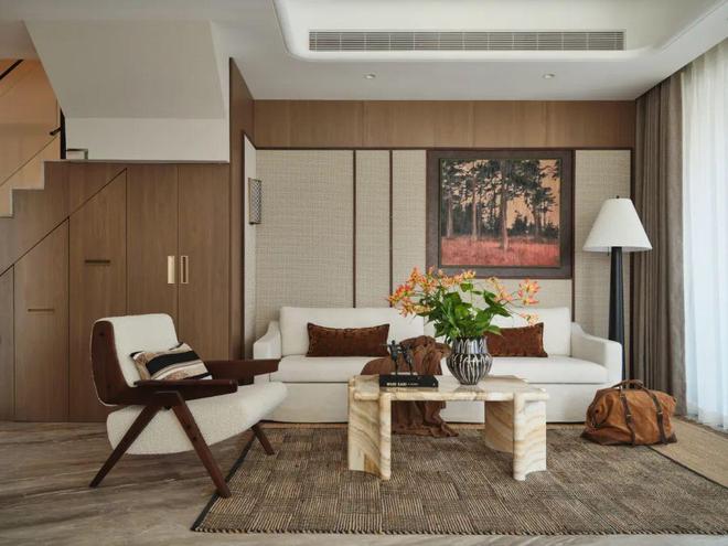 楼上楼下分层而居,能有效在垂直维度上构建“分而不离”的居住关系,让「小朋友的独立空间」、「男女主人的私密主场」与「父母的静谧天地」互不干扰。